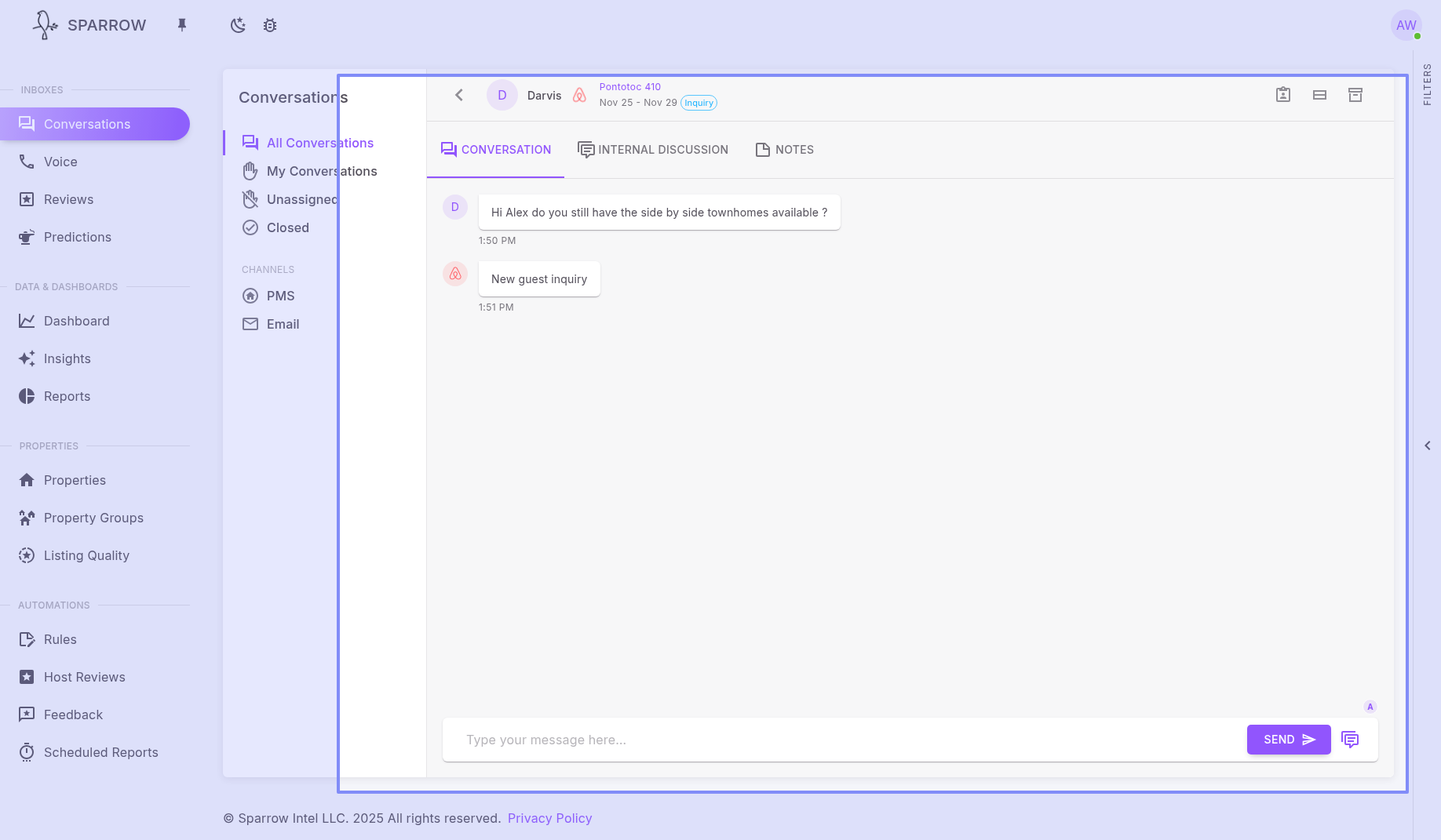 Inquiry that came in a few hours ago; no AI response suggestion was generated.
